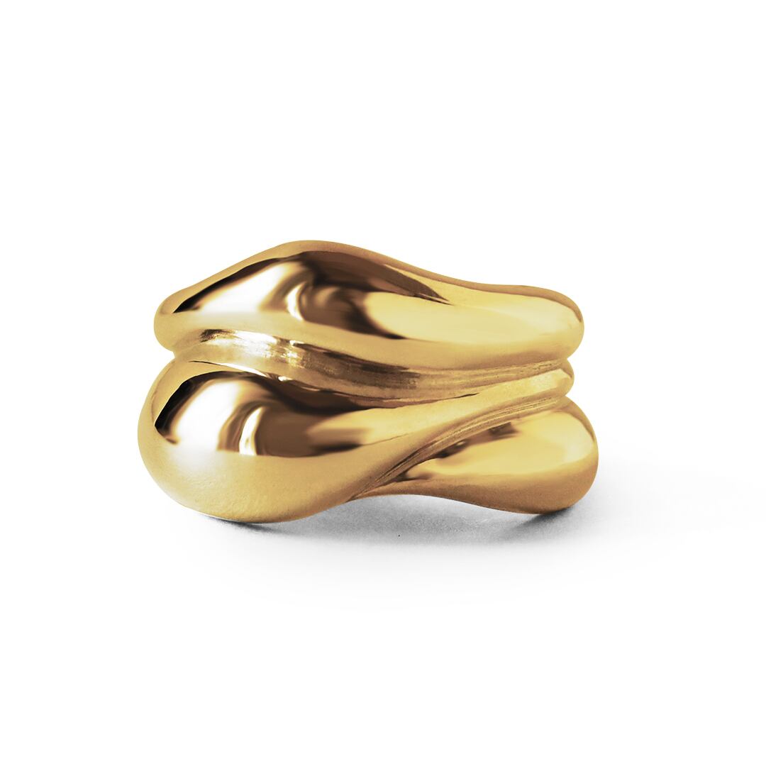 女性の身体をイメージしたリング。身体は人それぞれの愛しい個性であり、脂肪もその一つです。お腹や胸など、脂肪が密着した柔らかくもっちりとした印象をリングに落とし込みました。1つでもしっかりと主張のあるボリューミーなデザイン。身体を密着させるように、body ring 01-03の3つのリングを重ねて、オブジェ感覚でコーディネートを楽しめます。